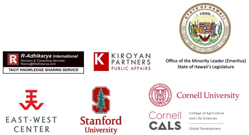 The R-Adhikarya “Niche” Award (RANA) Scholarship Program, from 2020 to early 2024, has 3 Winners at Stanford Univ., 3 Winners at Cornell Univ., and 4 Winners at the East-West Center (EWC).